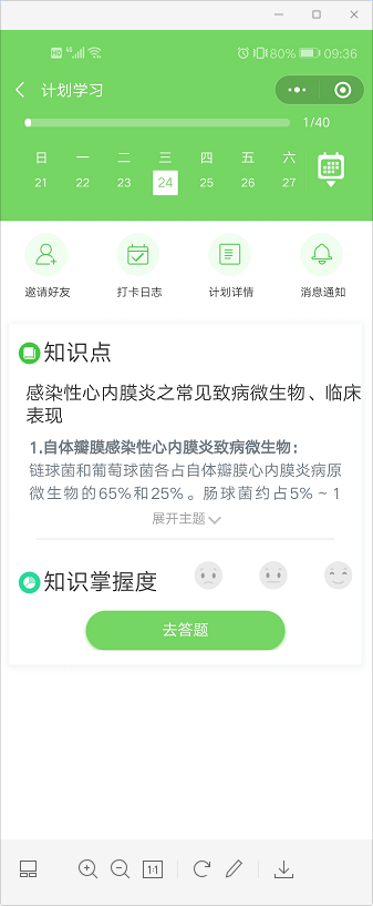 距離2021年全科主治醫(yī)師考試越來越近了,有很多考生對(duì)于習(xí)題的需求比較大,為滿足各位2021年全科主治醫(yī)師考生的需求,醫(yī)學(xué)教育網(wǎng)推出全科主治醫(yī)師免費(fèi)刷題小程序“醫(yī)考愛打卡”,每天一個(gè)知識(shí)點(diǎn),每天進(jìn)步一點(diǎn)!