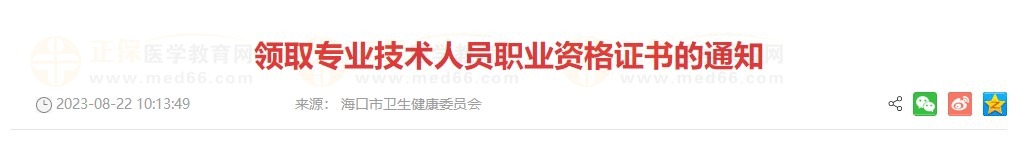 ??谑行l(wèi)生健康委員會發(fā)布領(lǐng)取專業(yè)技術(shù)人員職業(yè)資格證書的通知,具體內(nèi)容如下: