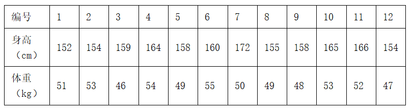 (共用題干29~31)某地12名女大學(xué)生身高與體重情況如下表