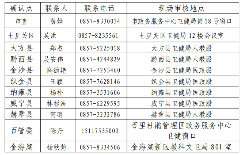 1、畢節(jié)市政務(wù)服務(wù)中心市衛(wèi)生健康第18號(hào)窗口:負(fù)責(zé)市直醫(yī)療衛(wèi)生單位及七星關(guān)區(qū)轄區(qū)內(nèi)市注冊(cè)民營醫(yī)院考生現(xiàn)場(chǎng)確認(rèn),各醫(yī)院明確1名負(fù)責(zé)人統(tǒng)一收集資料,集中確認(rèn),不受理個(gè)人確認(rèn)。
