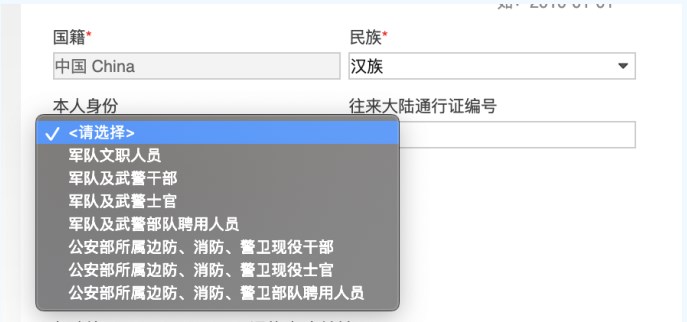 答:在“本人身份”下拉列表中選擇自己相應(yīng)的身份即可,注意現(xiàn)役與聘用人員的區(qū)別。如下圖: