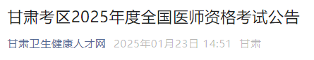考生速看!甘肅省2025年醫(yī)師資格考試報名|審核|考試公告已出!請相關(guān)考生仔細查看具體要求,做好報名工作準備!