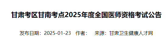 甘肅甘南自治州官方發(fā)布2025年醫(yī)師資格考試報名&審核安排要求,請相關(guān)考生及時查看官方通知要求,按時參與報名審核。