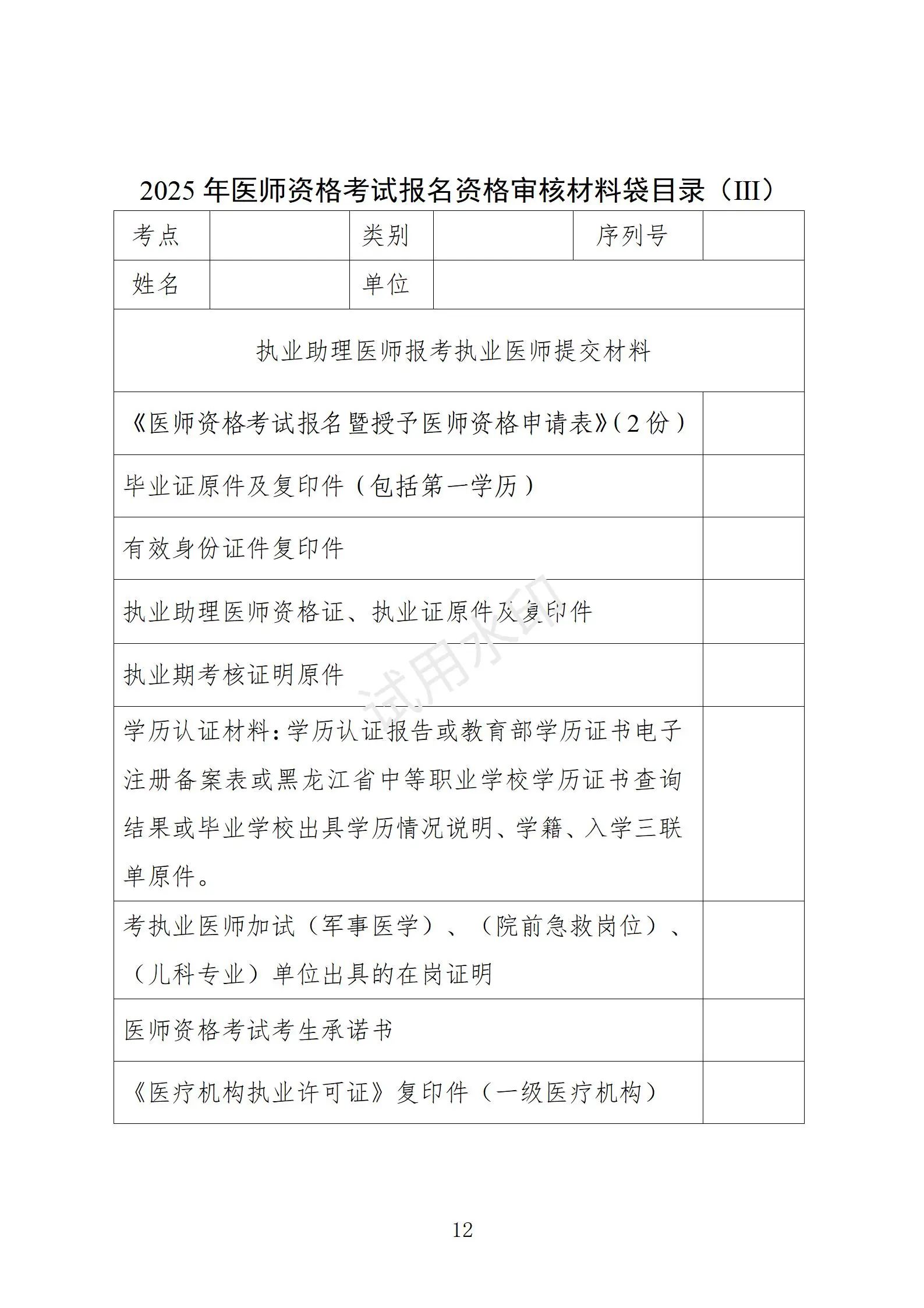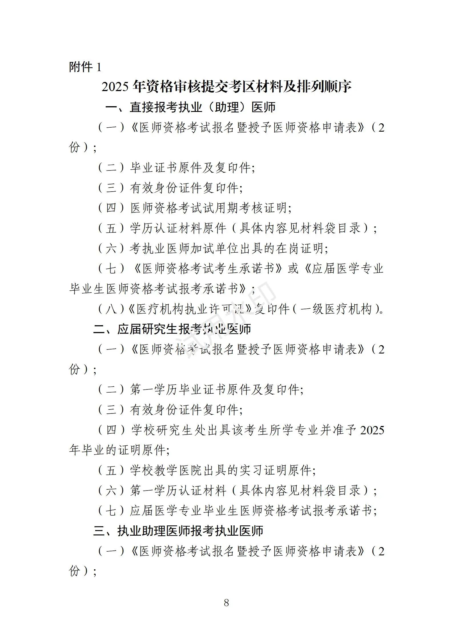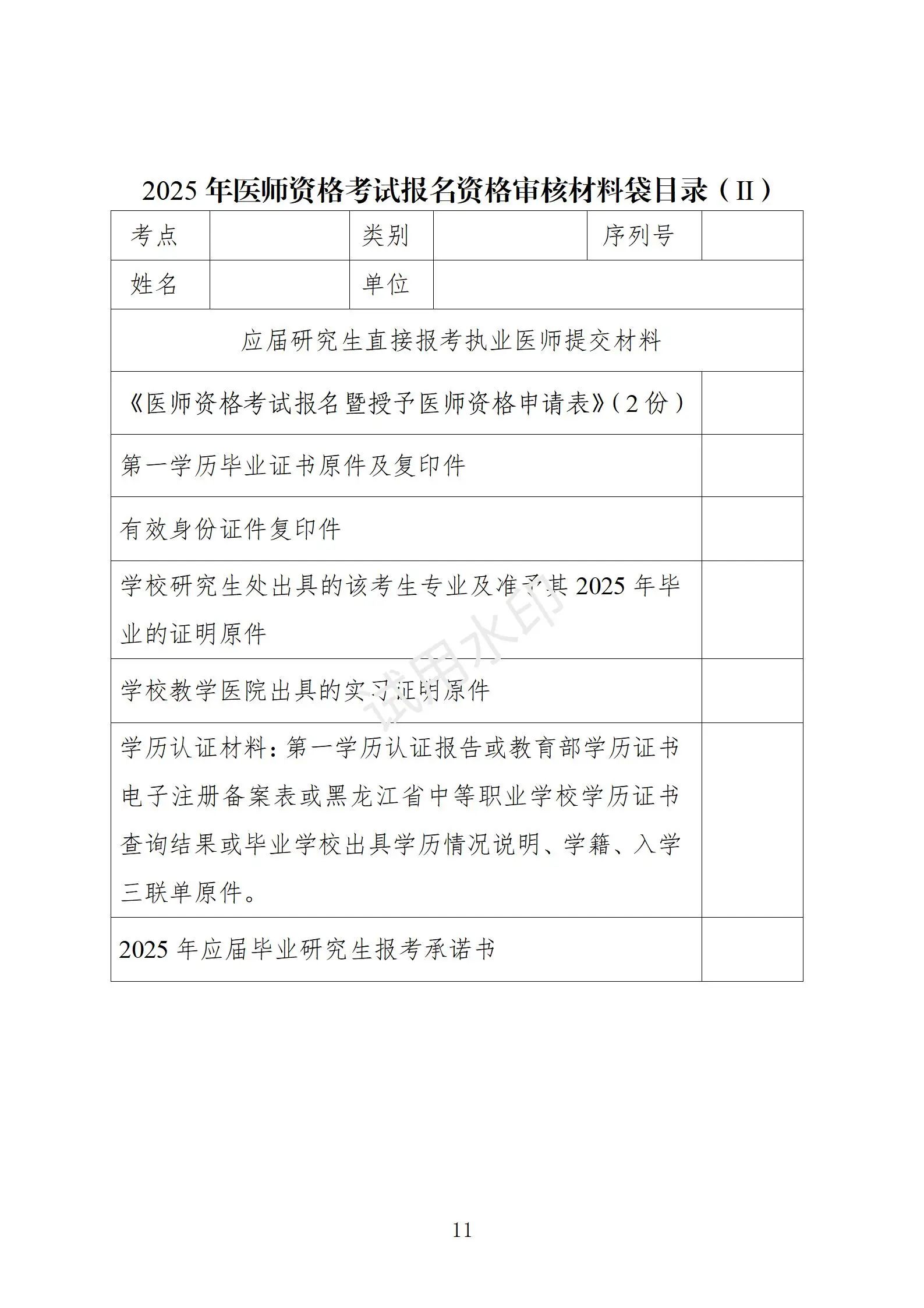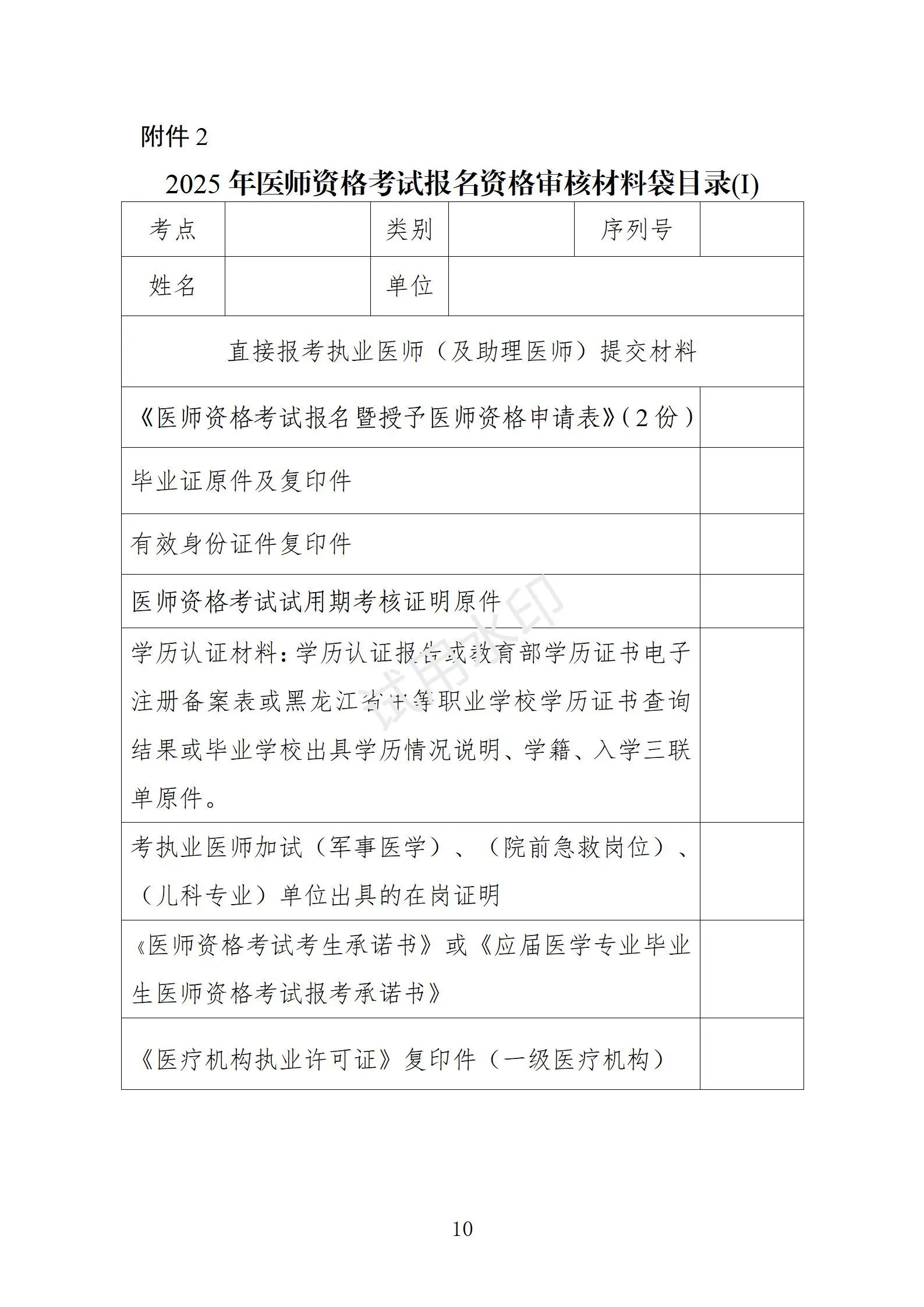2.2025年醫(yī)師資格考試報(bào)名資格審核材料袋目錄