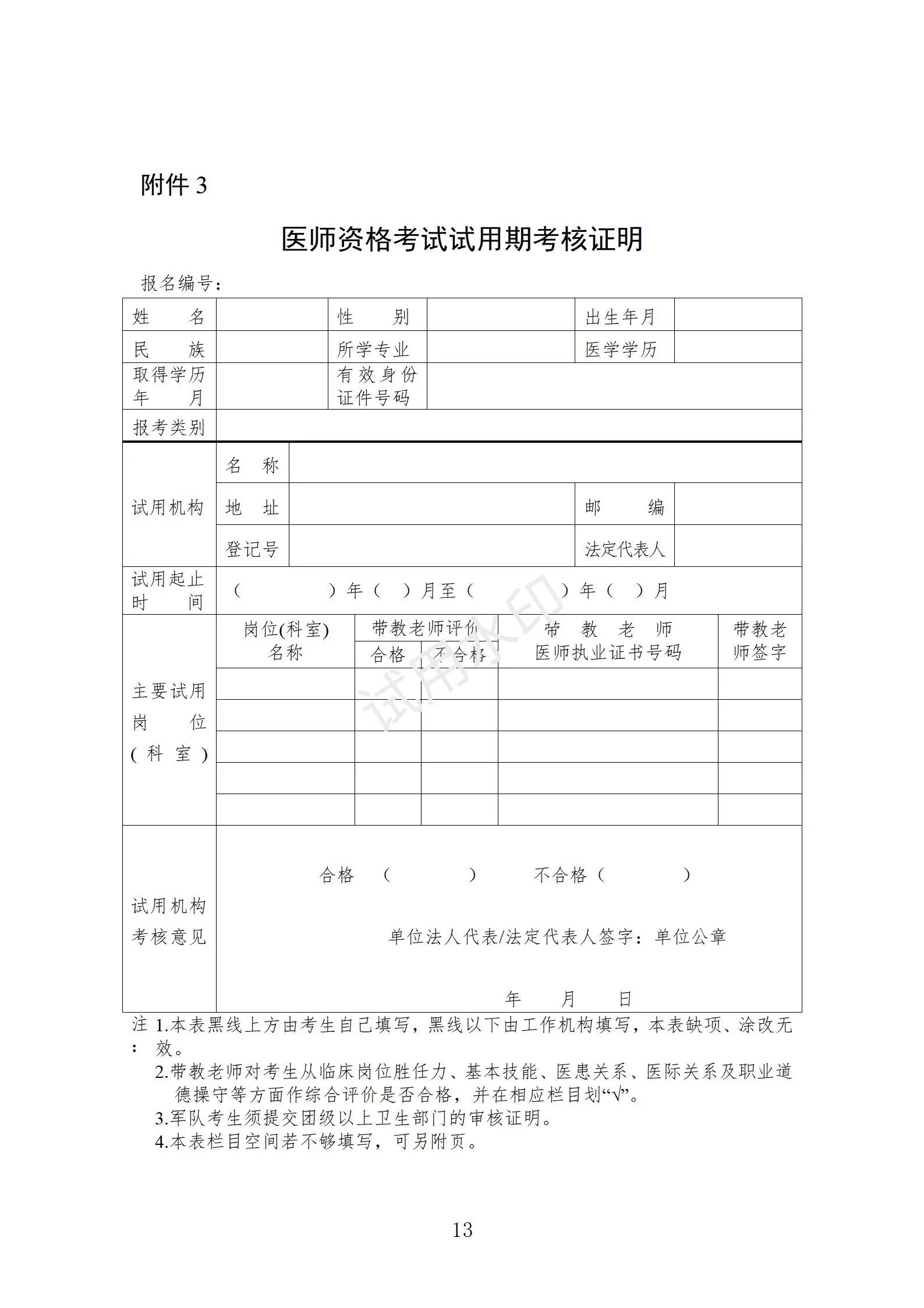 3.醫(yī)師資格考試試用期考核證明