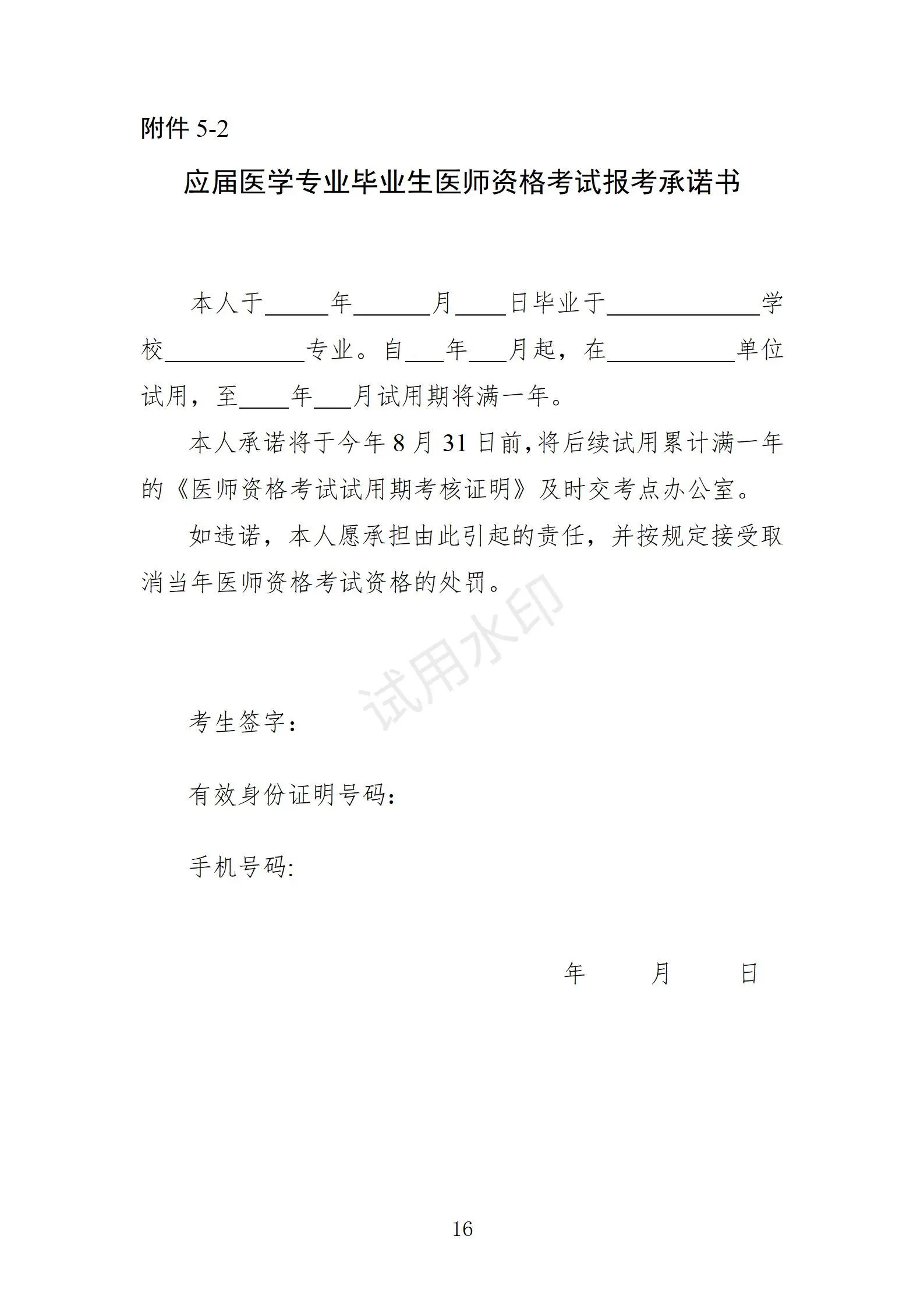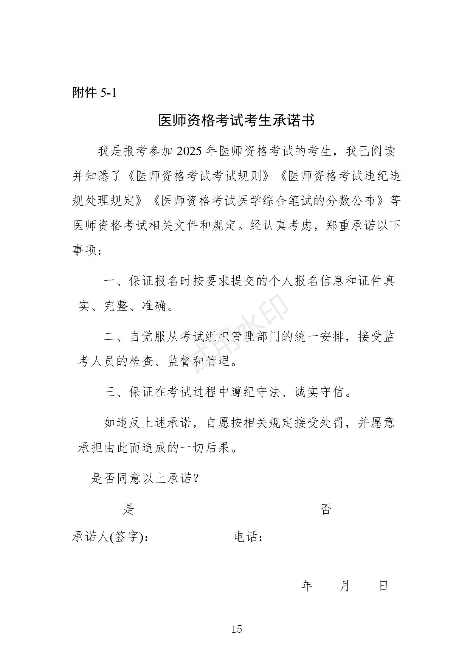 5.醫(yī)師資格考試報(bào)考承諾書
