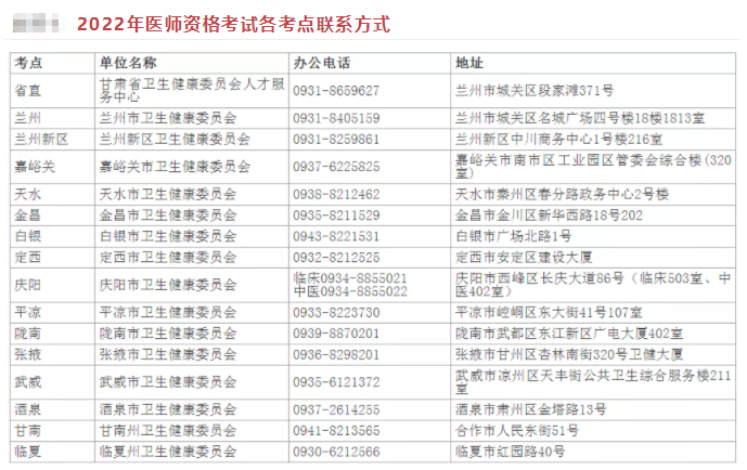 4.甘肅考區(qū)各考點2022年醫(yī)師資格考試報名審核考點聯(lián)系電話