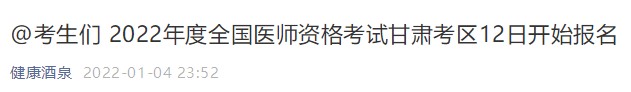 2022年酒泉市醫(yī)師資格實踐技能考試報名、資格審核通知