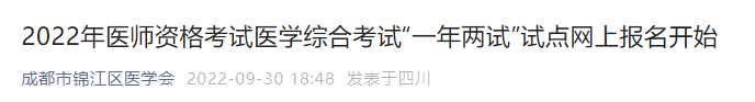 成都市錦江區(qū)2022年醫(yī)師資格考試醫(yī)學(xué)綜合考試“一年兩試”試點(diǎn)網(wǎng)上報(bào)名開始