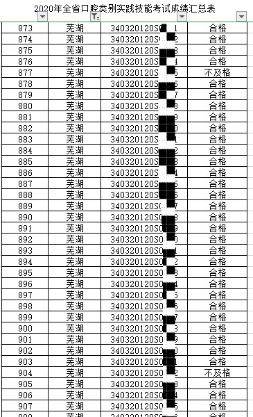 安徽蕪湖2020年口腔執(zhí)業(yè)/助理醫(yī)師資格實踐技能考試成績公示