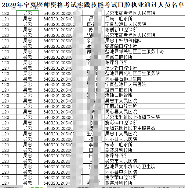 寧夏吳忠市2020年口腔執(zhí)業(yè)醫(yī)師實(shí)踐技能考試成績(jī)公布!附通過(guò)人員名單