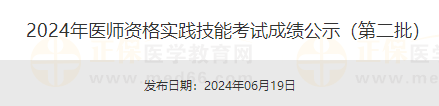 2024年醫(yī)師資格實踐技能考試成績公示(第二批)