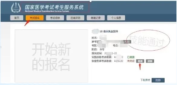 特別提醒:醫(yī)學(xué)綜合考試?yán)U費(fèi)入口僅對(duì)實(shí)踐技能考試結(jié)果為“技能通過(guò)”和“技能免考”考生開(kāi)放。實(shí)踐技能考試結(jié)果為“未通過(guò)”和非“技能免考”考生無(wú)此入口,請(qǐng)考生認(rèn)真核實(shí)技能考試結(jié)果和技能免考情況。