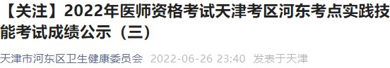 天津河?xùn)|區(qū)考點2022年醫(yī)師資格實踐技能成績公示(三)!相關(guān)通知醫(yī)學(xué)教育網(wǎng)編輯整理分享如下: