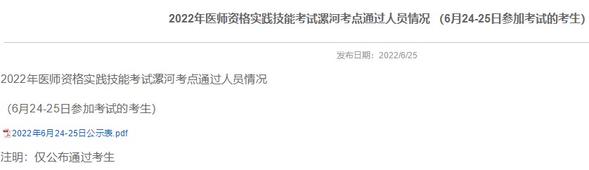 2022年6月24-25日醫(yī)師實(shí)踐技能考試漯河考點(diǎn)成績合格名單公示