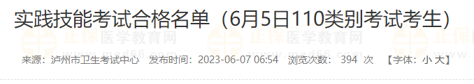 2023年6月5日臨床執(zhí)業(yè)醫(yī)師資格四川瀘州考點實踐技能考試合格名單