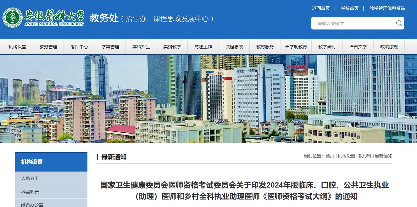 安徽考區(qū)2024年醫(yī)師資格考試臨床類別采用新版考試大綱!