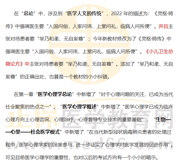 綜上來看,目前提到的醫(yī)學人文科目小變動洋洋灑灑,實質變動基本沒有,所以大家也算是放了一把大心了。
