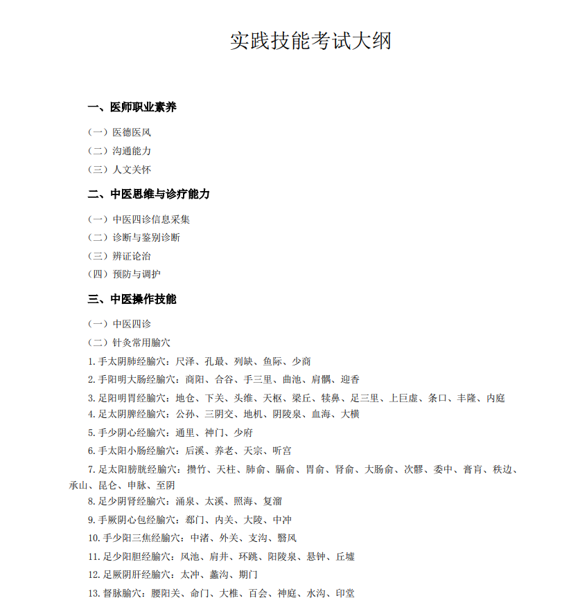 中醫(yī)執(zhí)業(yè)醫(yī)師實(shí)踐技能考試大綱2022年下載
