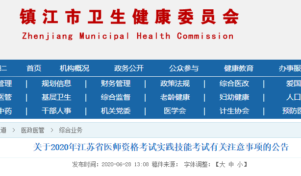 鎮(zhèn)江市衛(wèi)健委發(fā)布2020年醫(yī)師實(shí)踐技能考試考前注意事項(xiàng)通知