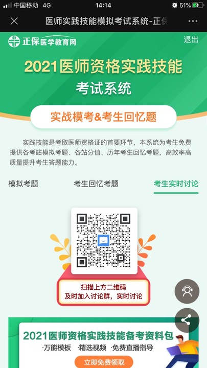 第四:考試期間大家可識(shí)別下圖中的二維碼及時(shí)加群,實(shí)時(shí)討論;交流模擬試題目,估分吐槽,還可以點(diǎn)擊底部“2021醫(yī)師資格實(shí)踐技能備考資料包”還有4G免費(fèi)實(shí)踐技能視頻等你免費(fèi)領(lǐng)!