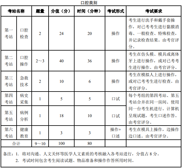 5、西醫(yī)類各站分?jǐn)?shù)與考試時(shí)間: