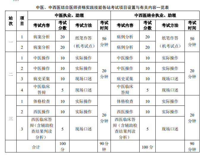 全國醫(yī)師資格實(shí)踐技能考試內(nèi)容及方式(西醫(yī)類、中醫(yī)、中西醫(yī)類別)