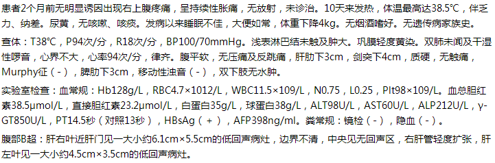 【例】男性,47歲。右上腹疼痛2個(gè)月,發(fā)熱10天。