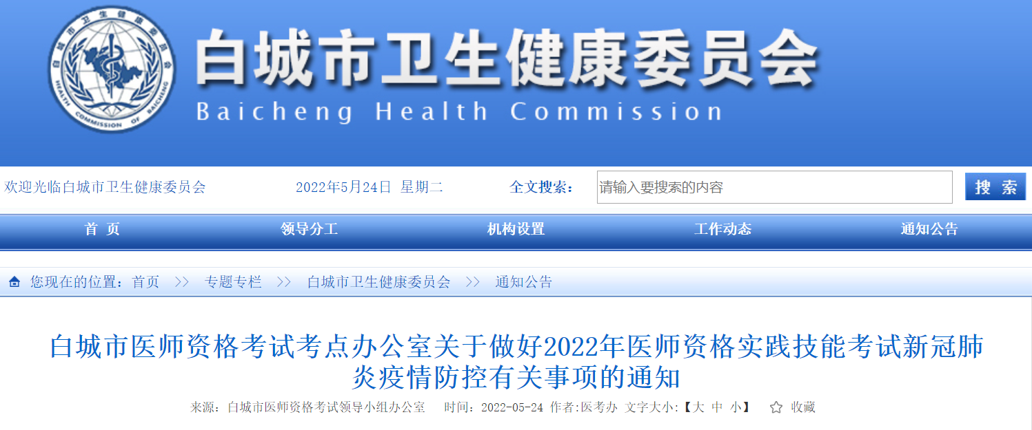 白城市考點(diǎn)2022年醫(yī)師實(shí)踐技能考試新冠肺炎疫情防控有關(guān)事項(xiàng)的通知