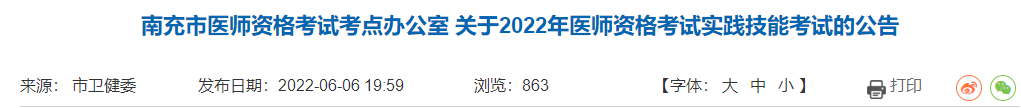 南充考點(diǎn)關(guān)于2022年醫(yī)師資格實(shí)踐技能考試疫情防控的通知