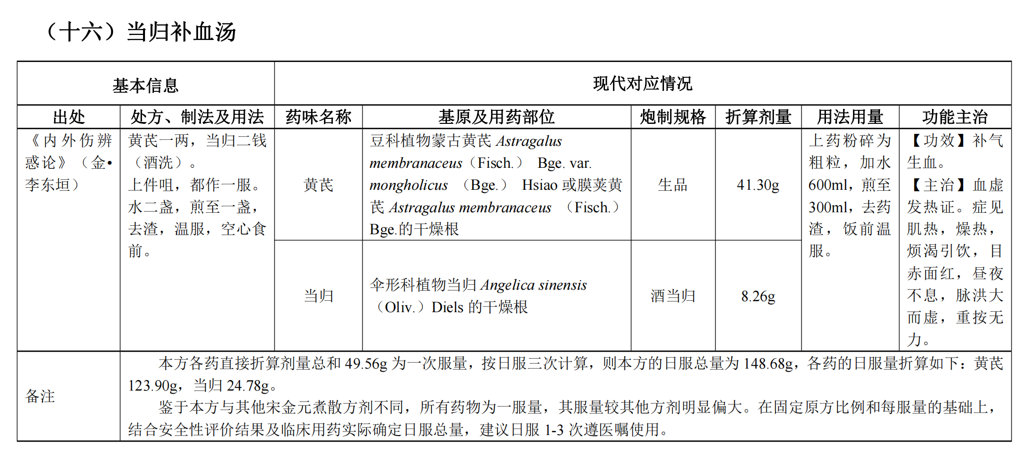 《古代經(jīng)典名方關(guān)鍵信息表(25首方劑)》——當(dāng)歸補(bǔ)血湯