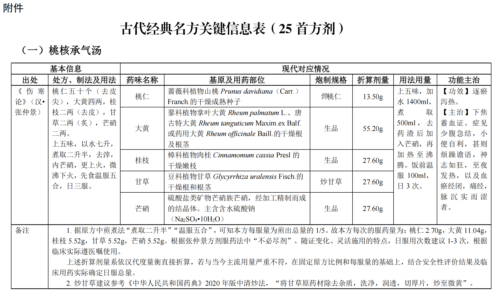 《古代經(jīng)典名方關(guān)鍵信息表(25首方劑)》——桃核承氣湯