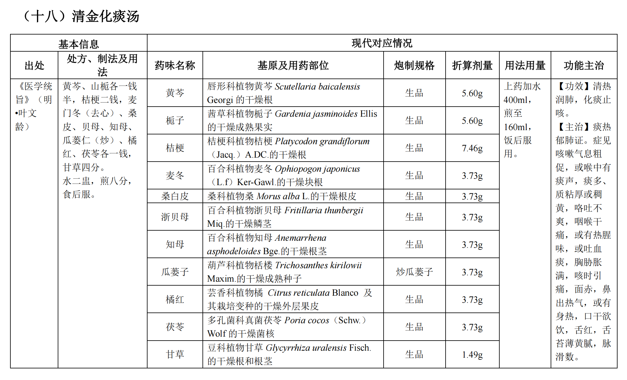 《古代經(jīng)典名方關(guān)鍵信息表(25首方劑)》——清金化痰湯