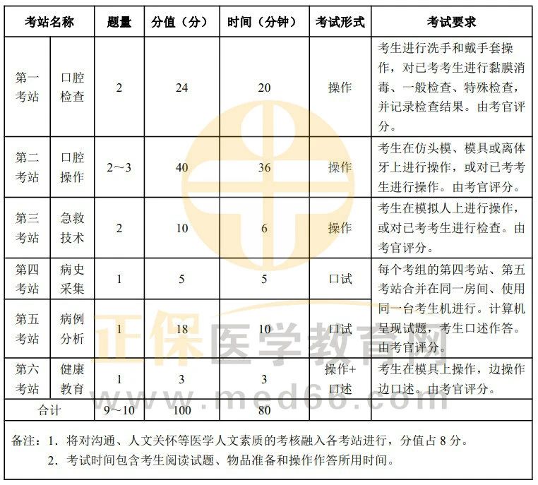 ? 口腔類別各站考試內(nèi)容、分?jǐn)?shù)與考試時(shí)間: