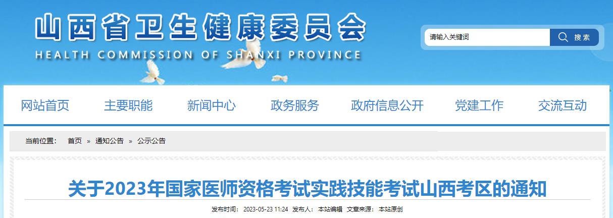 2023年國家醫(yī)師資格考試實踐技能考試山西考區(qū)的通知