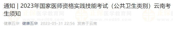 2023年國家醫(yī)師資格實(shí)踐技能考試(公共衛(wèi)生類別)云南考生須知