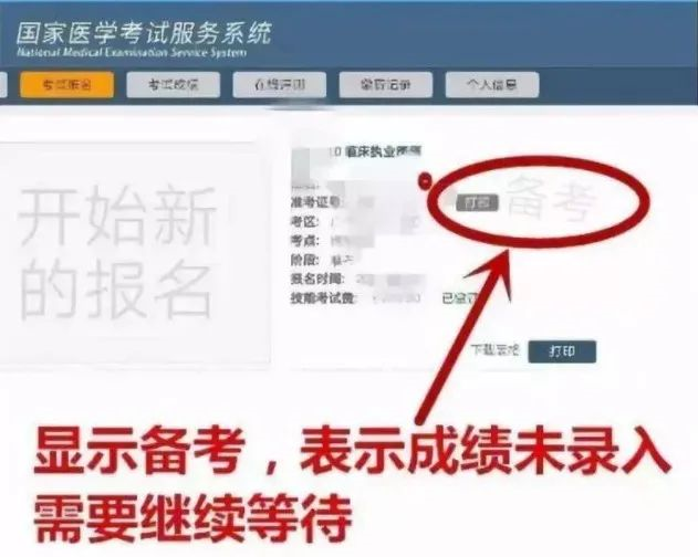 6.初次查詢,狀態(tài)顯示為“備考”,可能是成績暫未上傳至國家醫(yī)學考試網(wǎng),即成績查詢?nèi)肟跁何撮_通,比如陜西西安;或者需要在當?shù)乜荚囍行牟樵儭?/p>