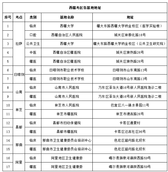 西藏考區(qū)口腔、公共衛(wèi)生、中醫(yī)、中西醫(yī)結(jié)合類別只在拉薩設(shè)置考點,請考生提前做好參考準(zhǔn)備。