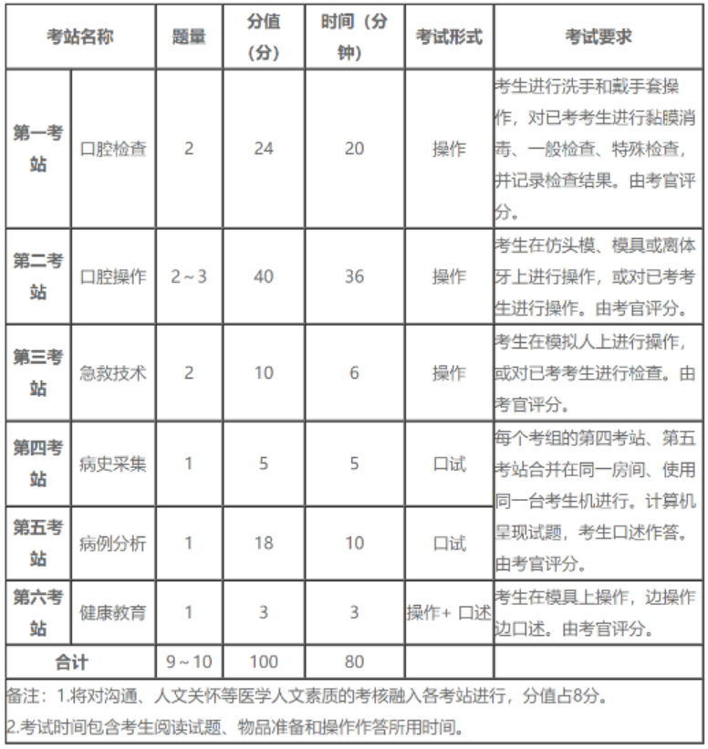 口腔醫(yī)師實踐技能考試各考站考試內(nèi)容及時間