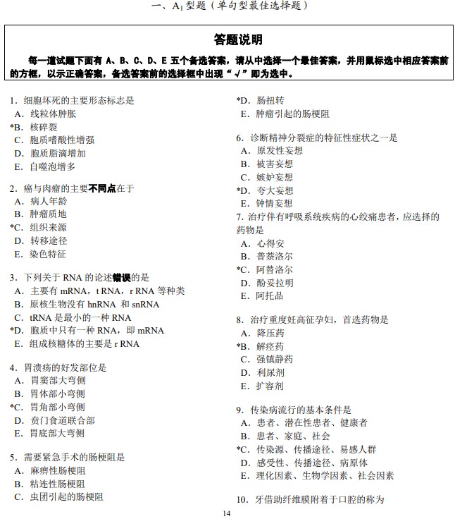 醫(yī)師資格考試采用 A 型和 B 型題,共有 A1、A2、A3、A4、B1 五種題型。醫(yī)師資格考試總題量為 600題,助理醫(yī)師資格考試總題量為 300 題?,F(xiàn)將各種題型簡(jiǎn)要介紹如下:
