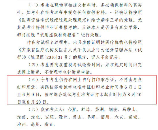 2020年安徽省省直醫(yī)師實踐技能考試準考證打印時間