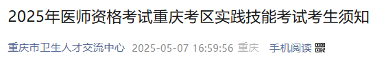 重慶沙坪區(qū)2025年醫(yī)師資格實踐技能考生須知&準考證打印時間公布