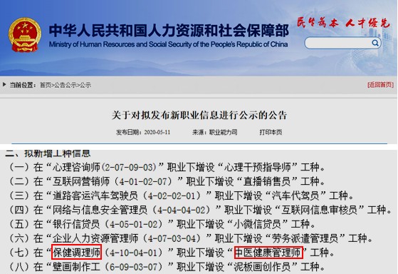 不是,“中醫(yī)健康管理師”是人社部發(fā)布的新增職業(yè),其工種歸在“保健調(diào)理師”職業(yè)下面。