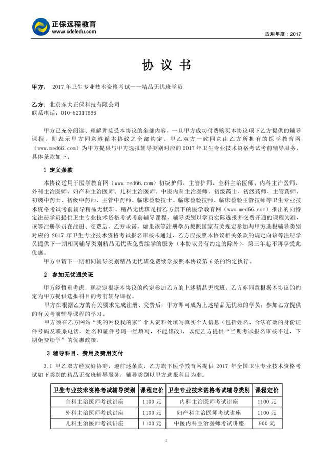 衛(wèi)生資格“精品無憂班”協(xié)議書
