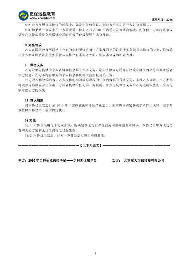 口腔執(zhí)業(yè)醫(yī)師“定制無憂班”協(xié)議書