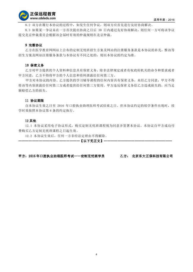 口腔執(zhí)業(yè)助理醫(yī)師“定制無(wú)憂班”協(xié)議書