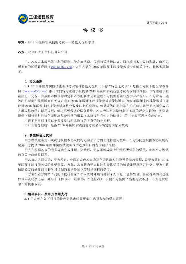 醫(yī)師實踐技能“特色無憂班”協(xié)議書