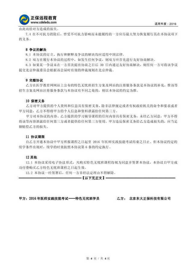 醫(yī)師實(shí)踐技能“特色無(wú)憂(yōu)班”協(xié)議書(shū)