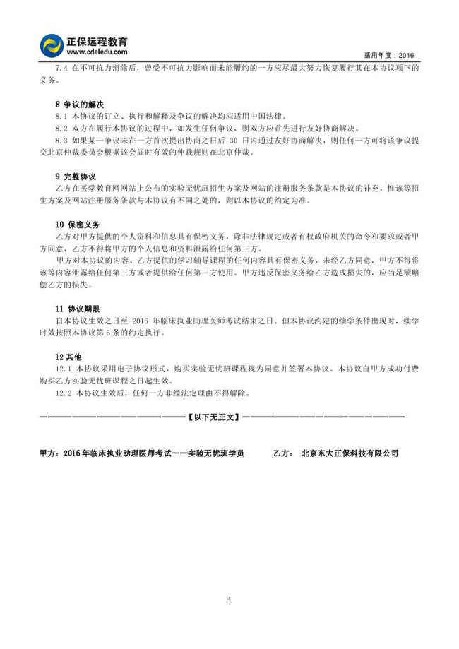 臨床執(zhí)業(yè)助理醫(yī)師“實驗無憂班”協(xié)議書