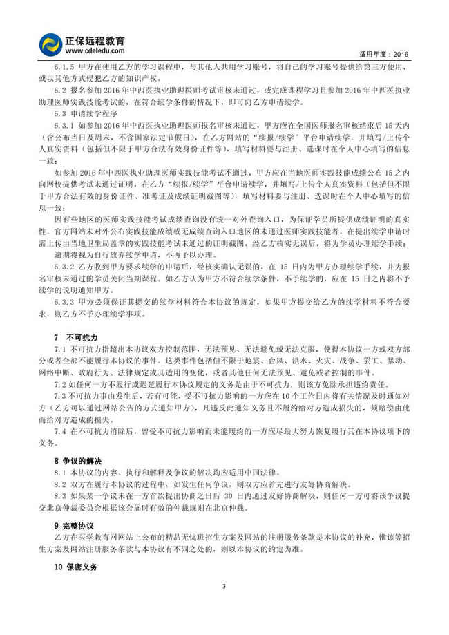 中西醫(yī)結(jié)合執(zhí)業(yè)助理醫(yī)師“精品無憂班”協(xié)議書